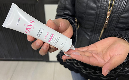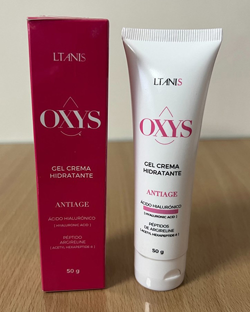 El nombre del producto es Oxys. Se basa en la idea de Claudia y contiene componentes y péptidos naturales. Por eso tiene un fuerte efecto regenerador.